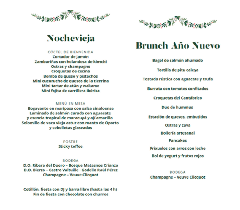 MENÚ NOCHEVIEJA Y BRUNCH AÑO NUEVO